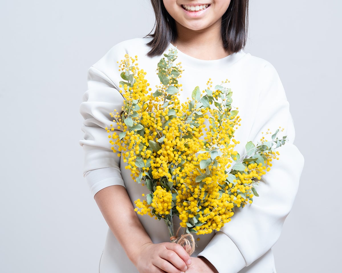 数ある商品の中から、当店へご訪問いただきありがとうございます。 大きく育ったミモザ。 当店のミモザは【パールアカシア】という品種で、 丸い柔らかな葉っぱが魅力です。 ミモザだけでまとめたスワッグです。 可愛がってくださる方にお届けしたくて作りました。 現品限りとなりますので、お早めのご注文をお待ちしております。 *********************** 作りたての頃はふわっとひらいた黄色い花は 日に日にドライになり小さくなっていきます。 詳細は画像をご覧ください。 ネットでお届けするために、 スワッグは、梱包サイズの箱に入るよう小さくまとめました。 箱サイズ/宅急便60 全長:25〜30cm(個体差により変化します) 横幅:15〜20cm(個体差により変化します) お届け時点ではドライフラワーの状態です。 ブーケのようにふんわり仕上げましたので、 (ドライになると小さくなってしまいましたが、、、) かごにいれて飾っても素敵です。 1年ほど楽しめます。 お好きなスタイリングで、楽しんでいただければ嬉しいです。